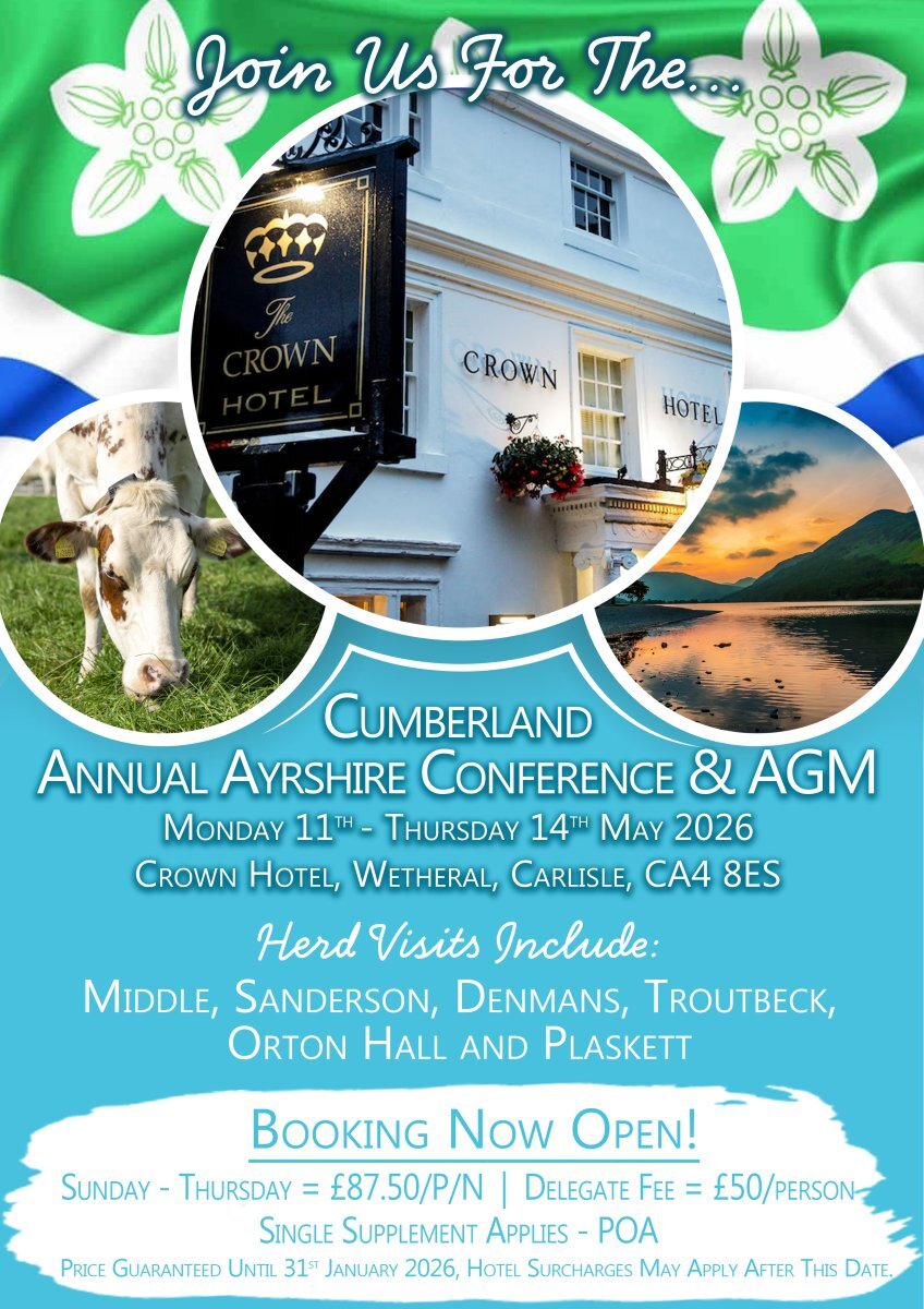 Bookings are now being taken for the 2026 Annual Conference & AGM, hosted by the Cumberland Ayrshire Breeders Club.