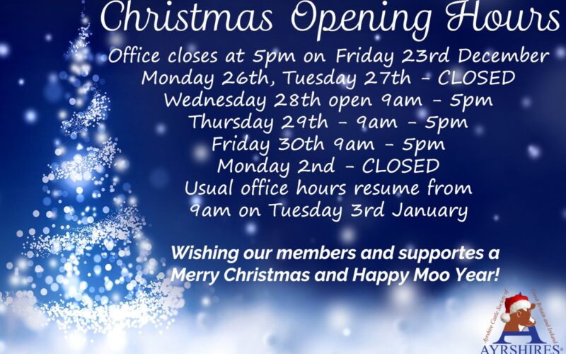 The Presidents, Directors and staff of the Ayrshire Cattle Society and Cattle Services would like to wish members, customers, friends and supporters a Merry Christmas and a Happy and Healthy New…